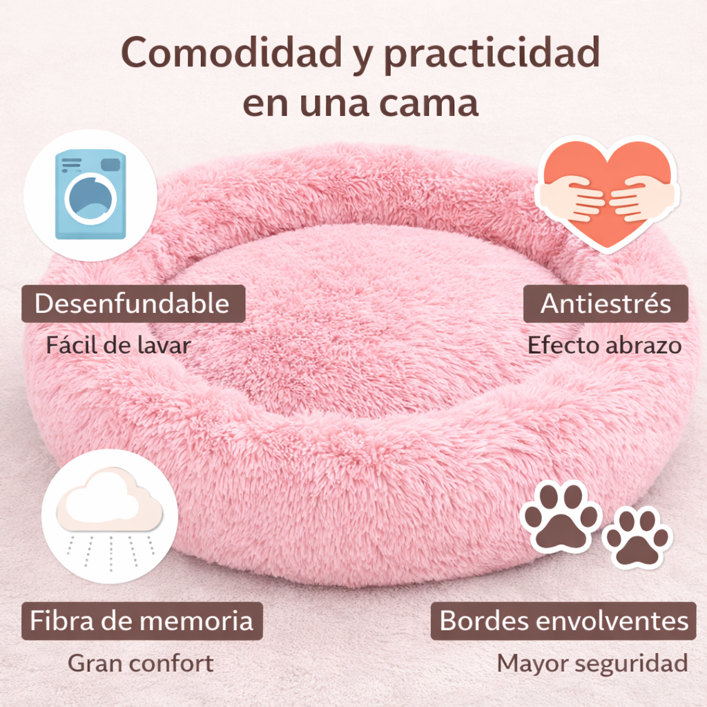 Cama Redonda 90 cm para Perros con Fibra de Memoria